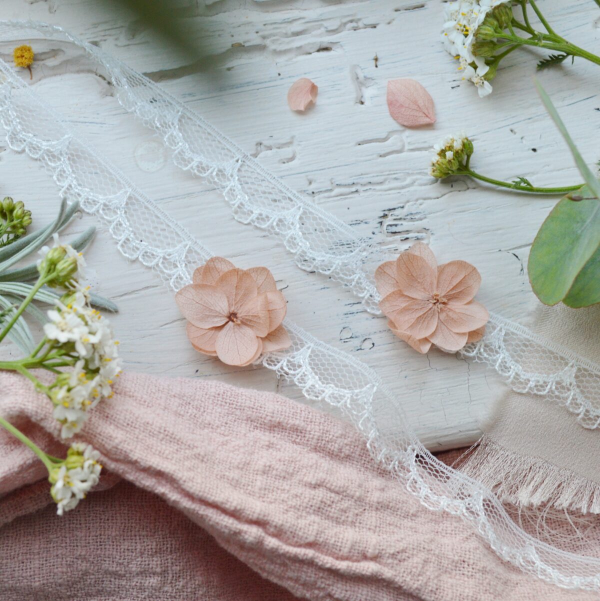 Chaque bracelet de cérémonie est composé de fleurs délicates stabilisées sur un ruban de dentelle. La taille des fleurs peut varier.Le bracelet se noue sur le poignet.