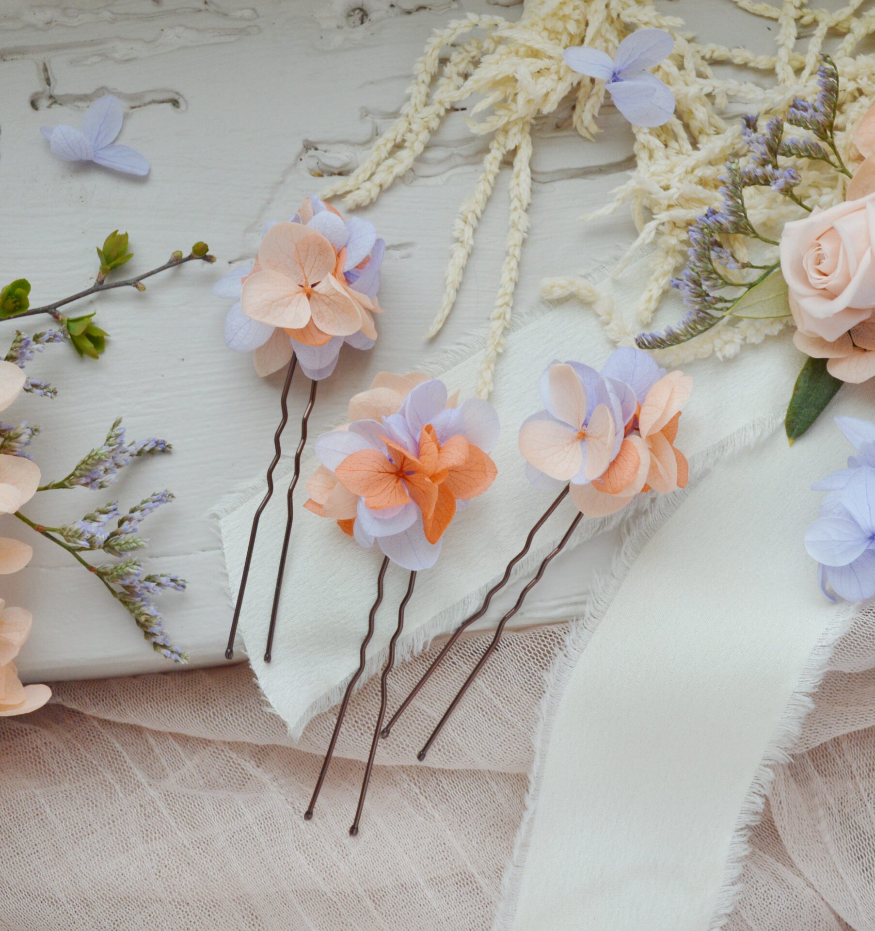 ♥ les épingles à chignon en feuillages stabilisés à glisser dans vos jolies coiffures et assorties aux peignes et aux headband Mes tites Lilis. Vous pouvez les superposer avec un bijou de cheveux mes tites lilis, ou en mettre autant que vous le souhaitez (3-5- 10…) pour en faire un magnifique accessoire de cheveux. C’est également très joli quand vos témoins ou demoiselles d’honneur en portent quelques unes assorties à votre coiffure ! ♥