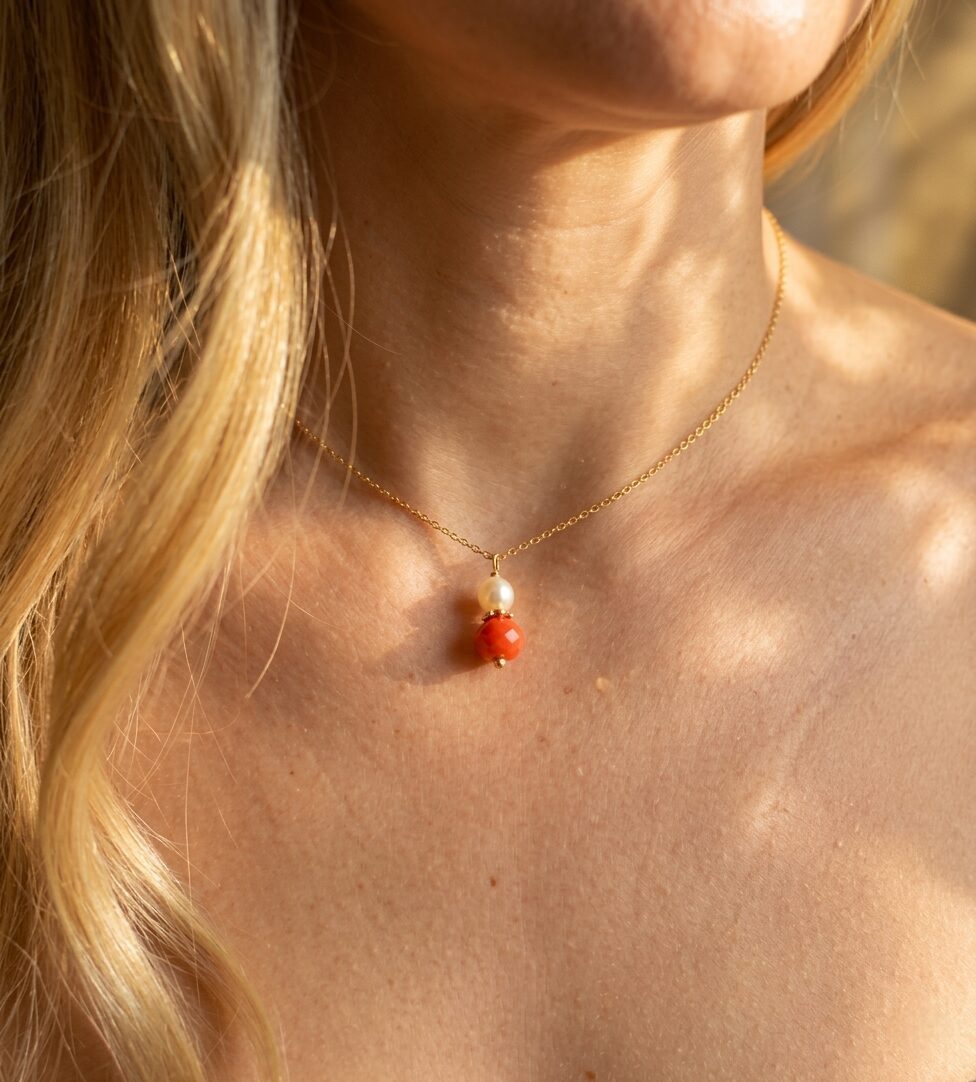 – Couleurs : blanc naturel, rouge pour les perles ,et or, or rose ou argent pour la chaine.